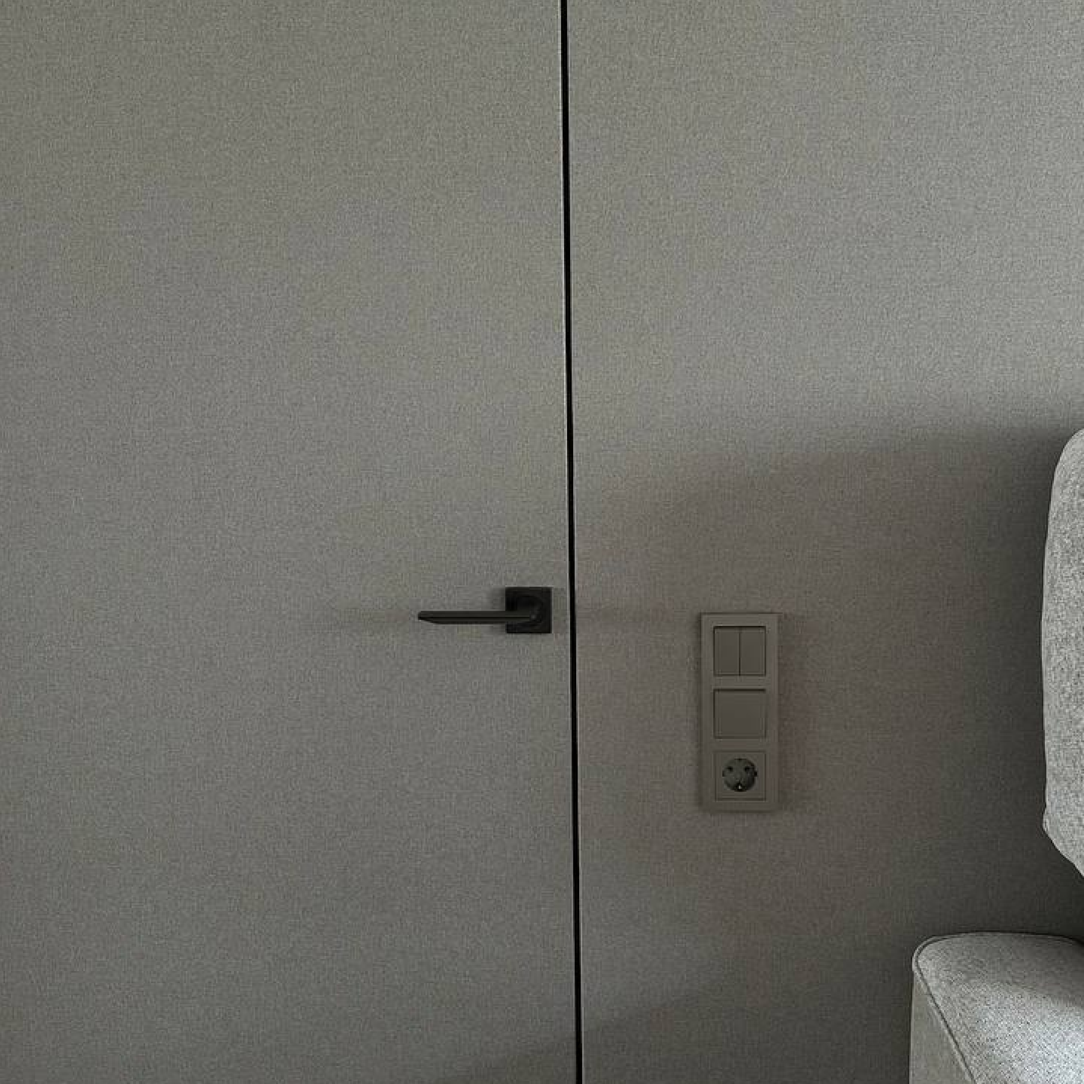 Katame tekstiiliga ka uksi - olgu need välisuksed, siseuksed või lükandustega kapid. Kõik näeb välja minimalistlik ja puhas, varivuukidega ja ilma liigsete detailideta - see on seinte ühtne ja harmooniline jätk.
